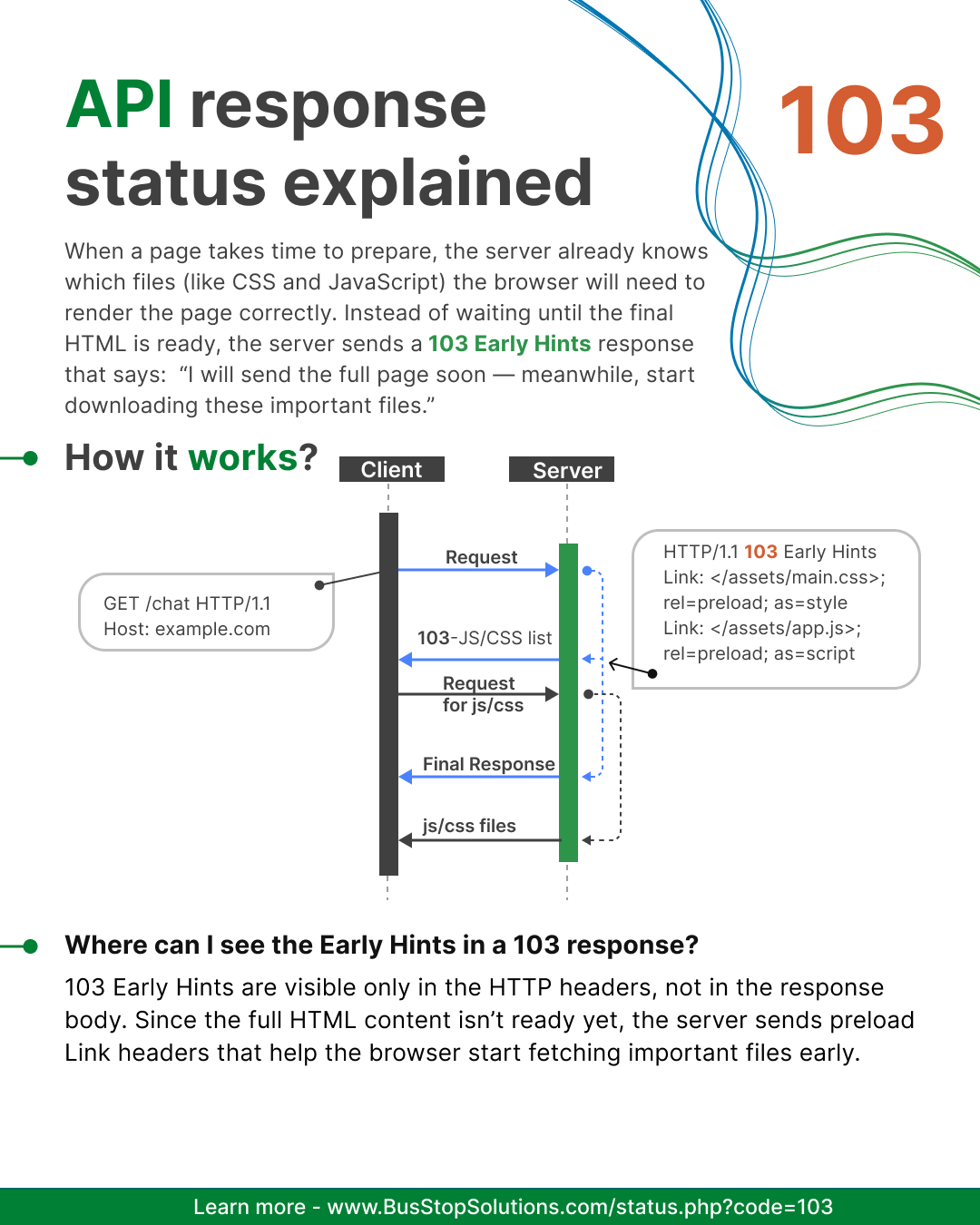 103 Early Hints fixes this issue. It sends a short response before the final result. The browser receives preload instructions and starts fetching key files. This improves performance and creates a smoother experience.